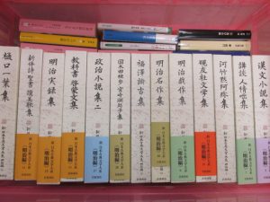 です。文学全集はお値段おつけできないものが多くなっておりますが古典文学関係はお値段お付けできるものが多いので揃い、不揃いにかかわらずご相談ください。