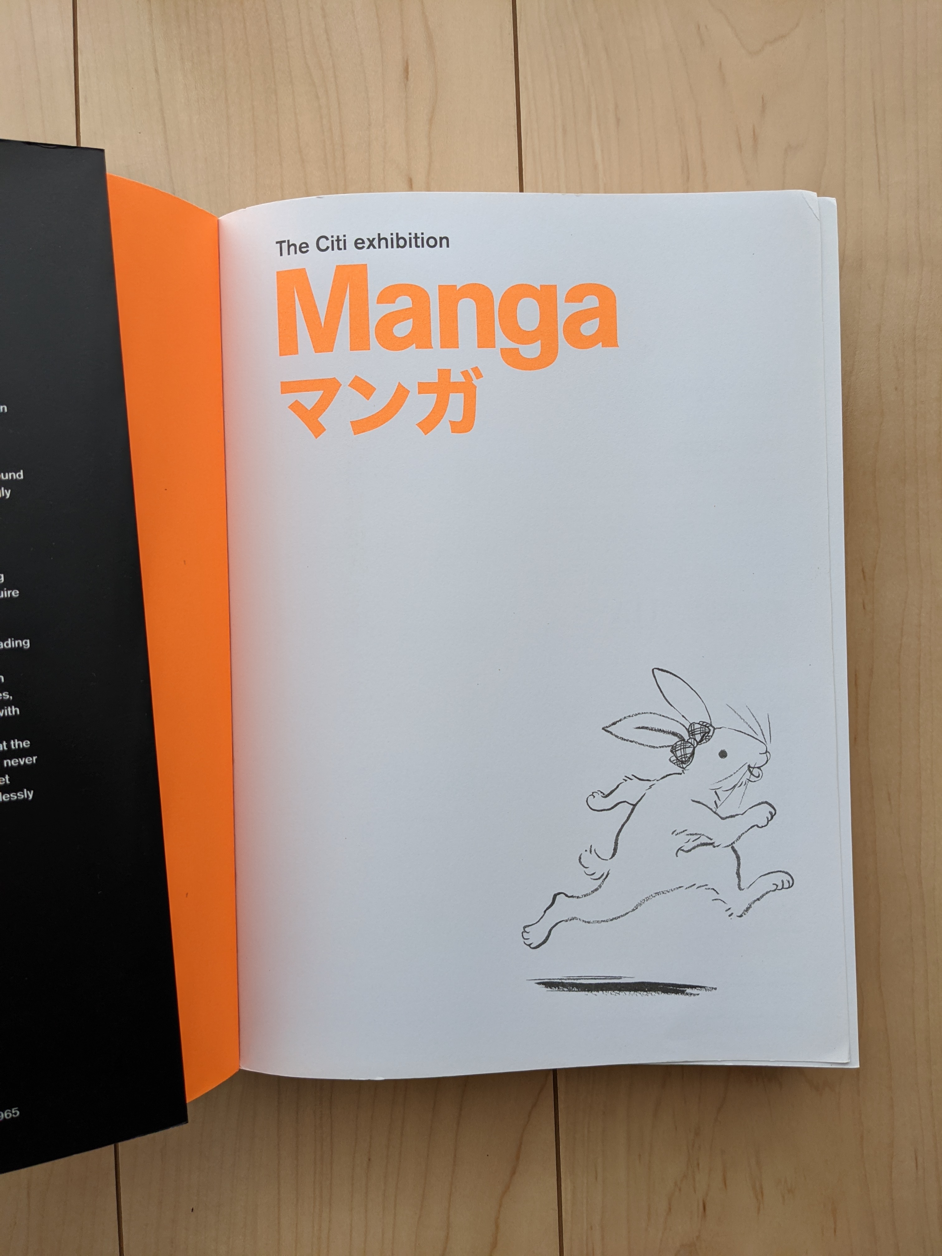 ※ちなみに、上記「ギガタウン~」のギガは鳥獣戯画の「戯画」にもかかっており、作品が鳥獣戯画へのオマージュにもなっています。こちらの展覧会会場には作品内のウサギ「ミミちゃん」がガイドマスコットとして登場していたようです。図録にも彼女の姿がちらほら。