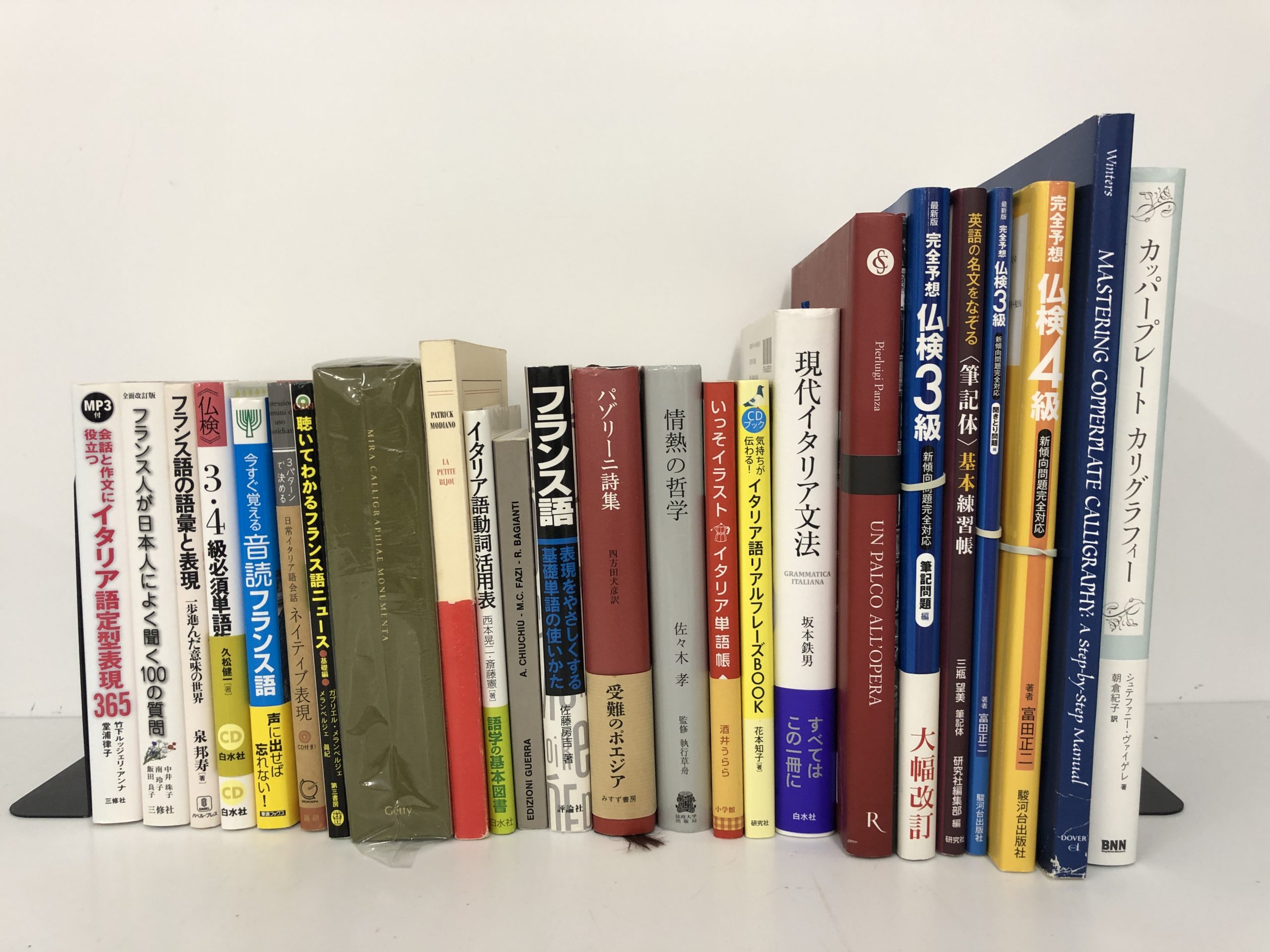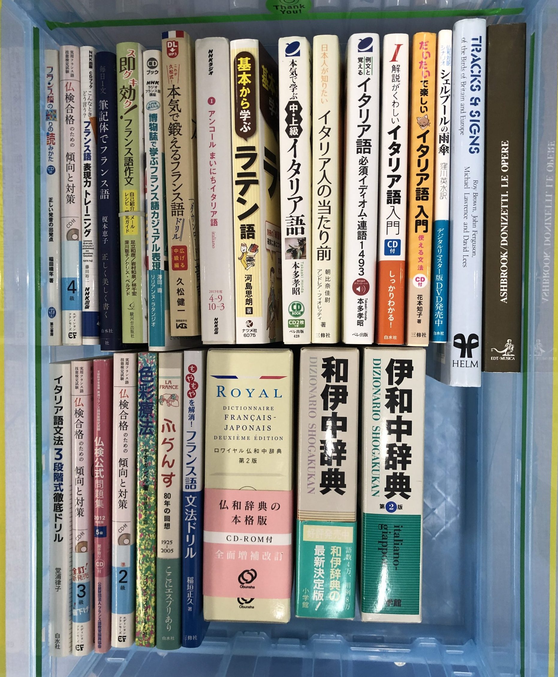 今回はイタリア語・フランス語の学習、試験対策用テキストをたくさんお譲りいただきました。ありがとうございます。今回は合計で約250冊ほどの書籍をお譲りいただいたのですが、概算で30,000円ほどの査定額をおつけすることができました!
