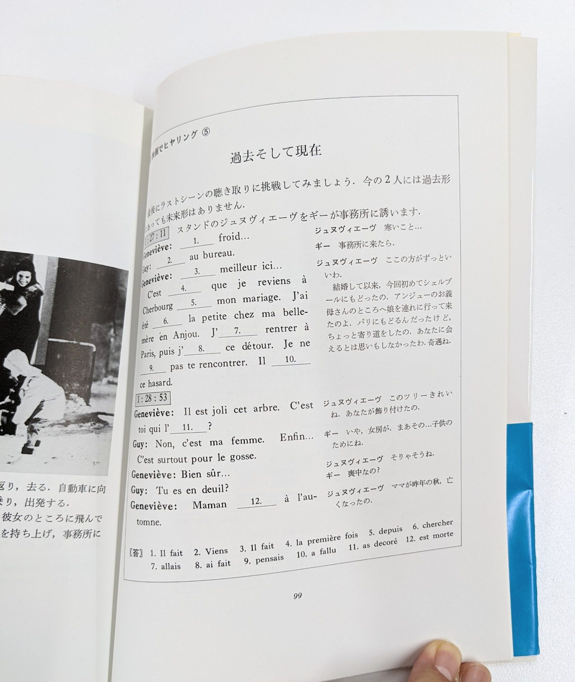 今回は私はこちらの本を参考にしながら主題歌シーンやラストシーンを視聴してみましたが、「実はこんなことを歌っていたんだ!」という新たな発見が楽しかったです。また、普通に映画を見ているだけでは聞き飛ばしてしまっていたエピソードをじっくり文字で追えることで物語の内容に衝撃を受けたり(例えば、劇中のジュヌヴィエーヴの年齢設定が17歳(!)であること)、ジュヌヴィエーヴの恋人のギーが招集を受けた戦争がアルジェリア戦争(1954-1962)であったらしきことを知って時代背景に思いを馳せたり、より深く映画を味わえた気がします。
