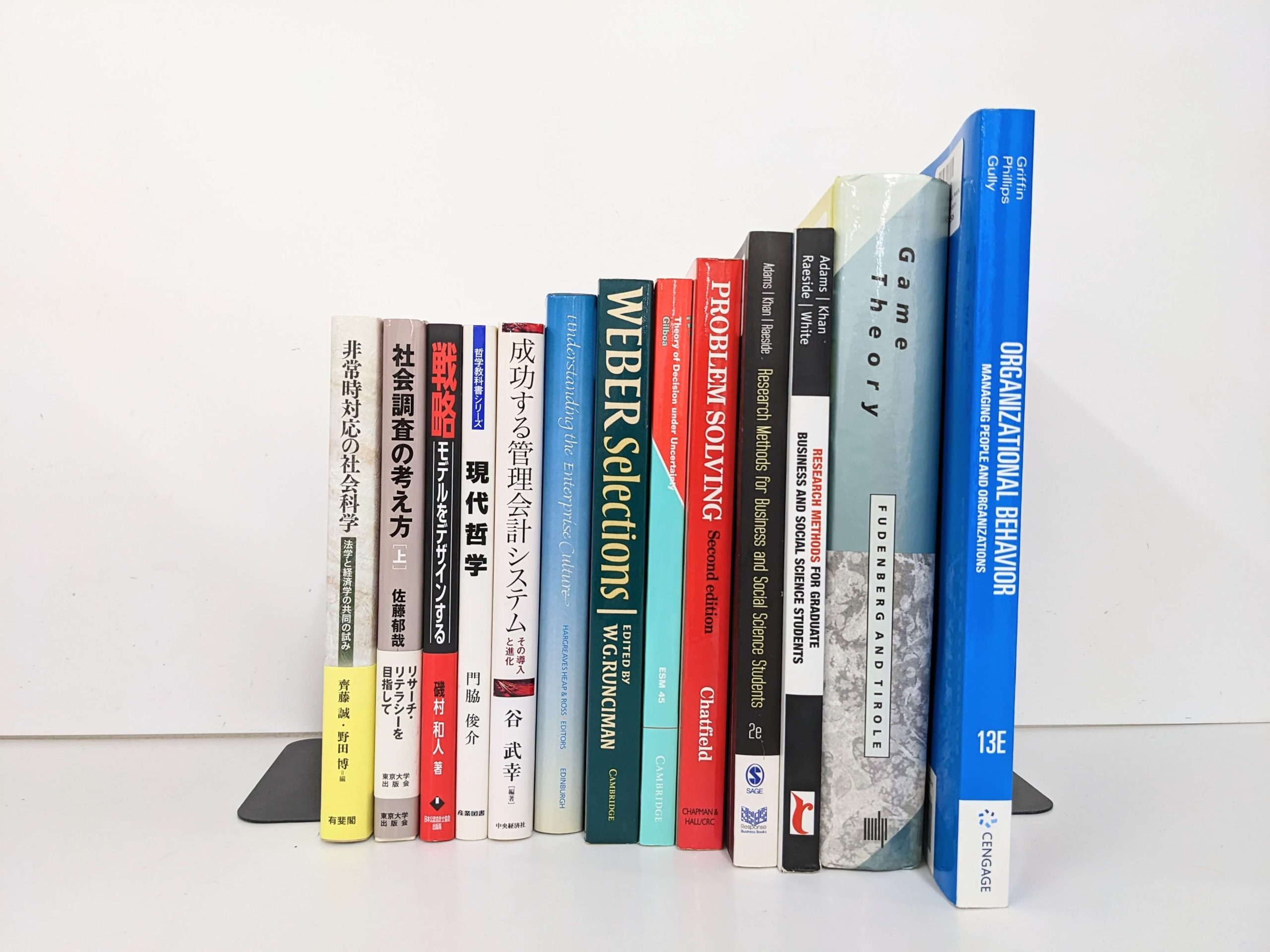 内容としては、経営・金融に関連して統計学や数学などの本が多かったですが、その他にも語学関連や哲学、社会学の書籍など様々なジャンルのものが含まれておりましした。
