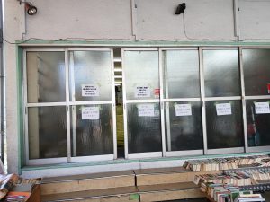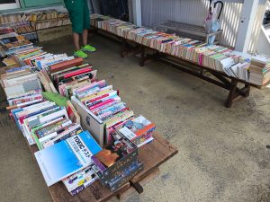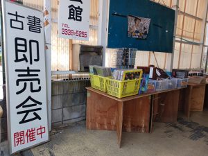 一部の商品はお客様にもお気軽に手にとっていただけるよう入り口付近に陳列されたものの、多くは西部古書会館屋内の棚にて販売されました。