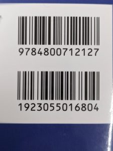 現在、新しく出版される書籍には大抵、このISBNに日本国内基準である図書分類記号と価格コードを付与した「日本図書コード」を2段組のバーコードで表した「書籍JANコード」が印字されています。( 下の写真のような感じです。たまたまデスクにあった本のものを撮ってみましたが、このコード1つで世界中のあらゆる本から一冊の本を指定できるのですから、よく考えれば凄いことです。)