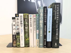向かって右側は『地生態学からみた日本の植生』小泉 武栄 (著)、2018、文一総合出版 ←こちらは下から4番目の本