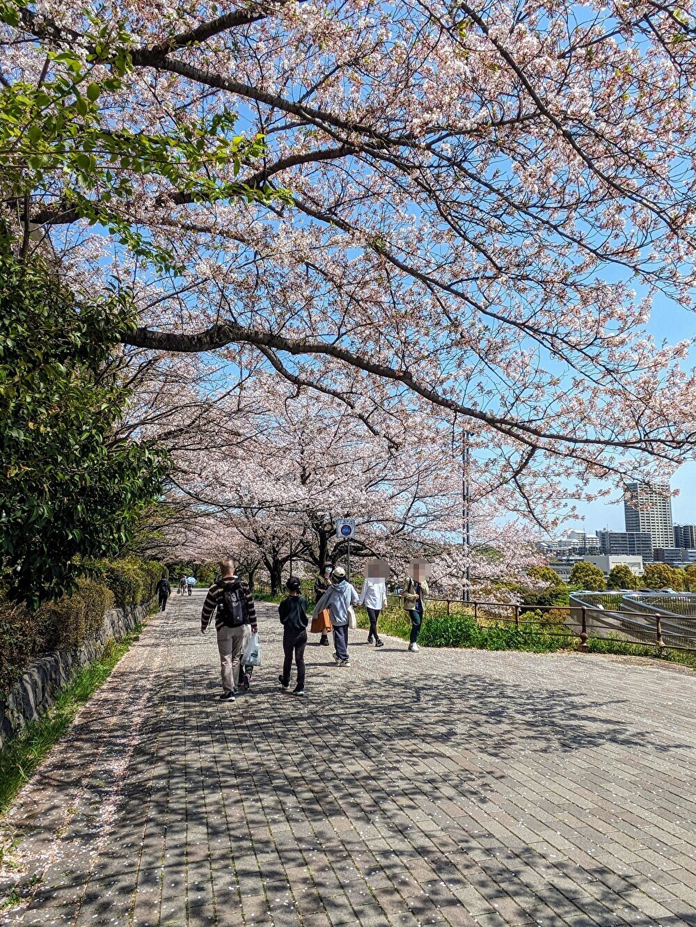 近隣の東京都立大学正門脇に続く桜並木。開催期間中の週末がギリギリの見頃でした。