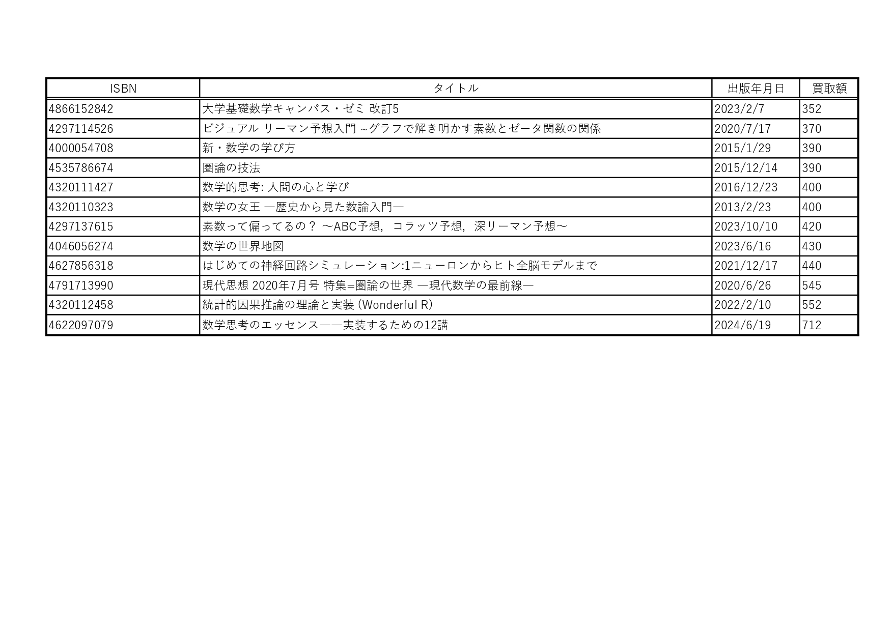 数学書の買取【178冊 29,874円】