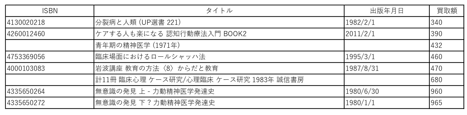 今回は精神医学・臨床心理に関する書籍を中心に買い取りました。