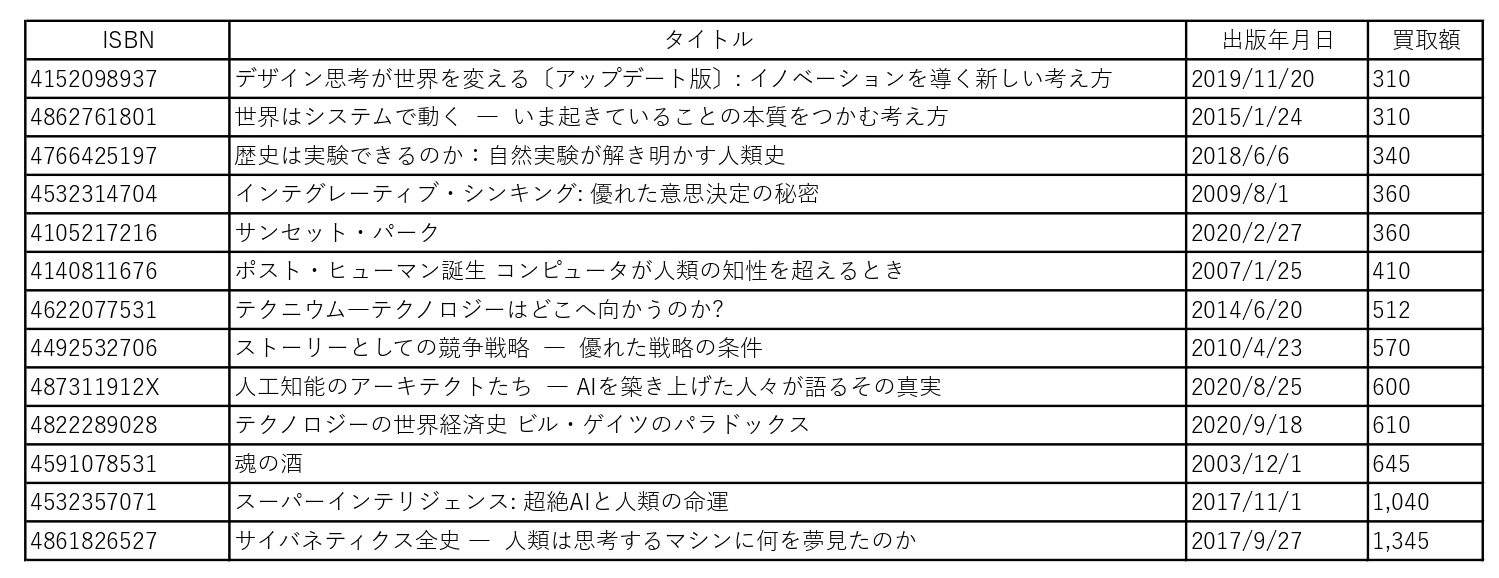 今回はAIやコンピュータなどテクノロジーの進化の歴史に関する書籍を中心に、経営学などの本も買取させていただきました。