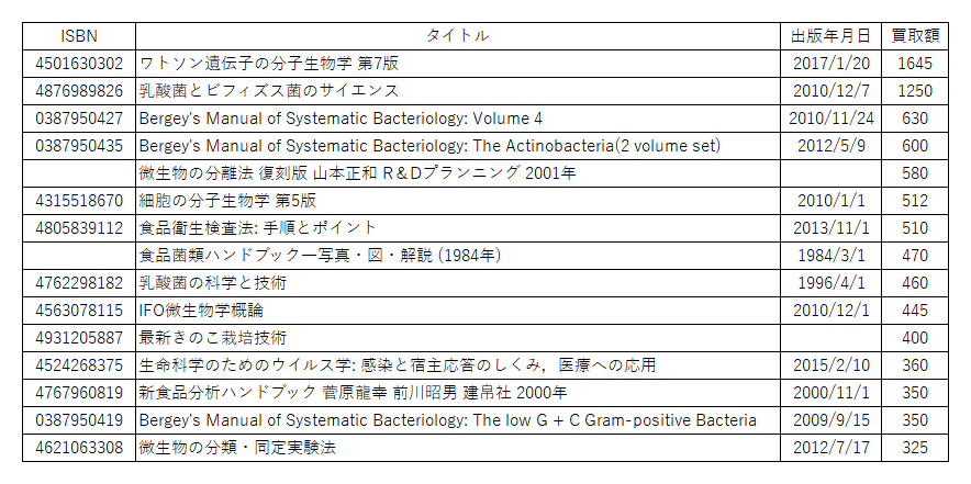 今回はウイルスや微生物など、生命科学関連の書籍を多数お売りいただきました。