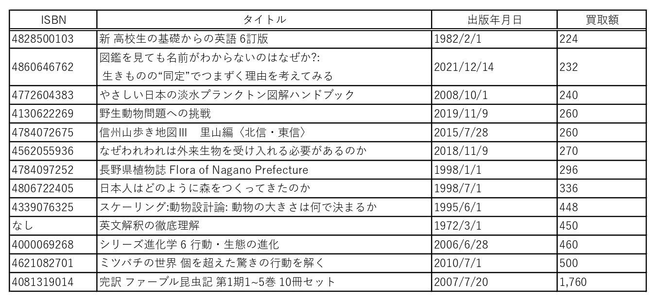 今回は生物多様性や環境問題など生物学に関連する書籍を中心に買取いたしました。