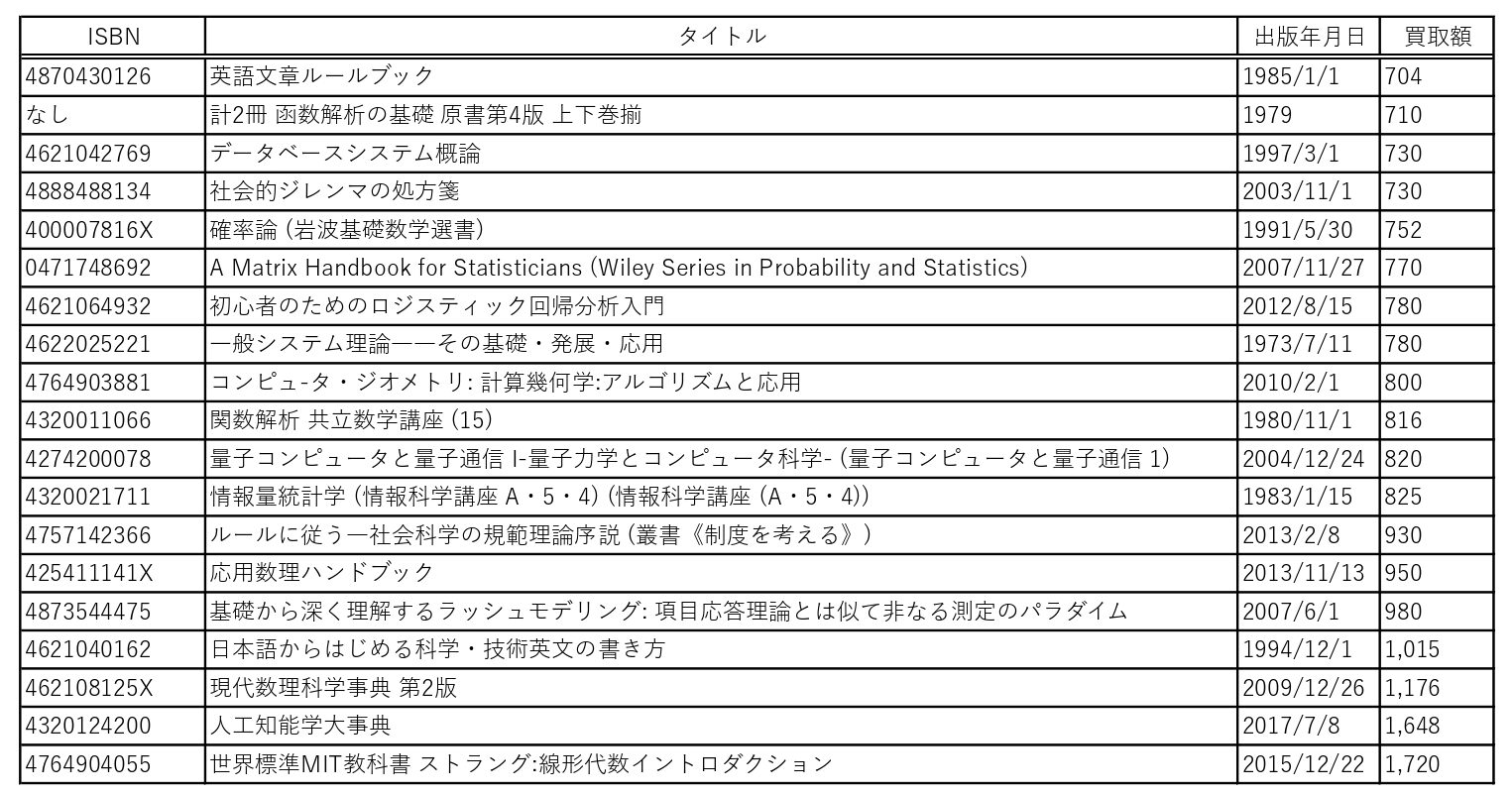 1970年代から2010年代まで新旧問わず貴重な書籍がたくさんありました。中には絶版などの事情により中古市場でしか出回らないものもありましたので、次に読みたい方にとってはまさに宝の山だったかと思います。