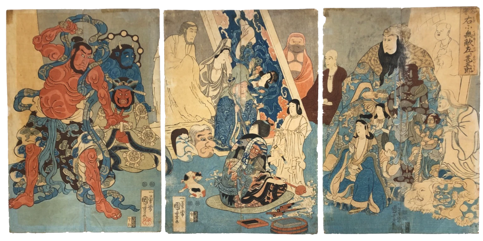今回は歌川国芳(うたがわ くによし)の木版画浮世絵を中心にまとめて3点 59,500円で買取させていただきました。